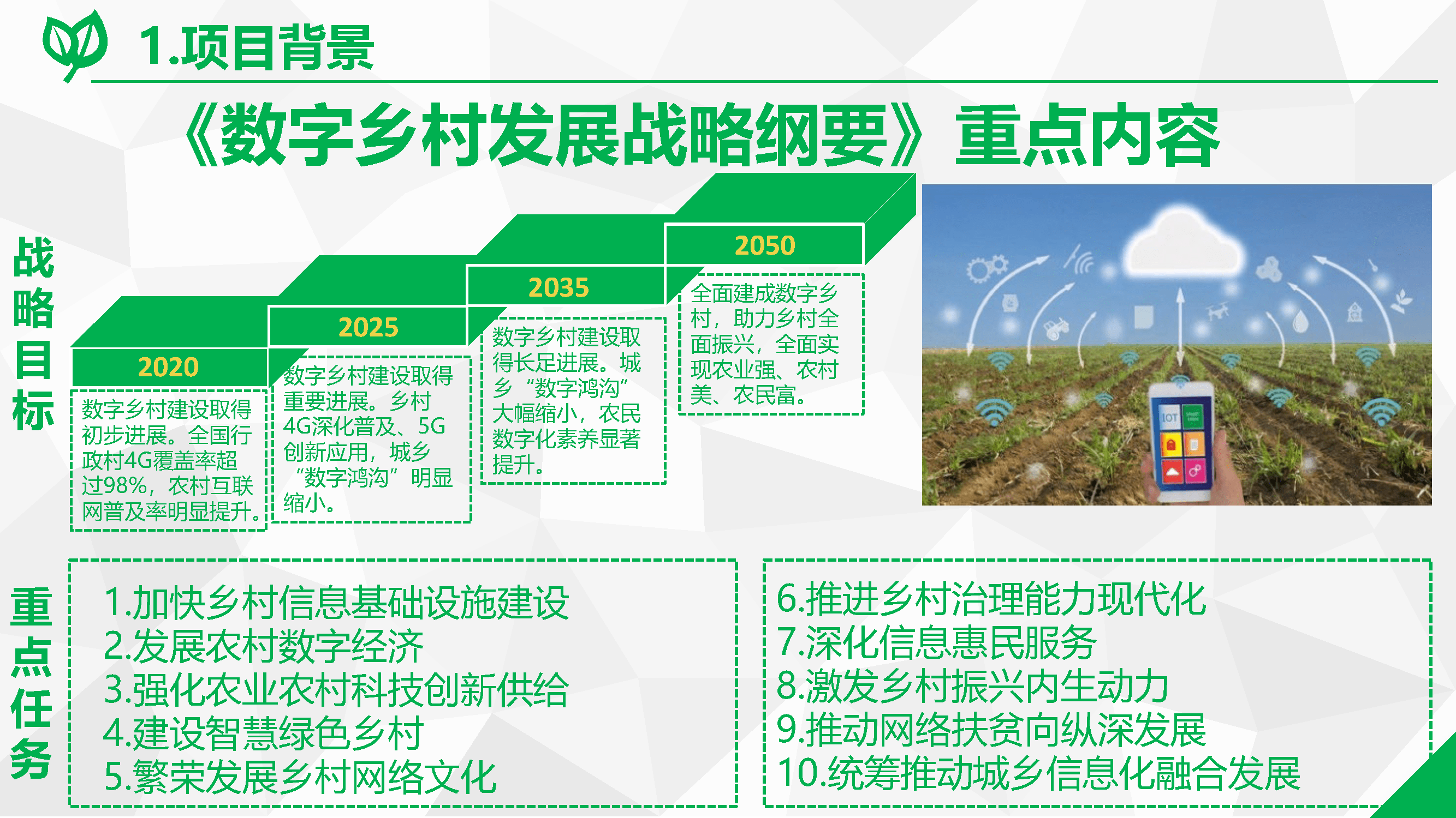 中央網(wǎng)信辦等七部門(mén)聯(lián)合印發(fā)《關(guān)于開(kāi)展國(guó)家數(shù)字鄉(xiāng)村試點(diǎn)工作的通知》提出完善“三農(nóng)”信息服務(wù)體系,“三農(nóng)”問(wèn)題目的是要解決農(nóng)民增收、農(nóng)業(yè)發(fā)展、農(nóng)村穩(wěn)定,三農(nóng)”問(wèn)題關(guān)系到國(guó)民素質(zhì)、經(jīng)濟(jì)發(fā)展,也關(guān)系到社會(huì)穩(wěn)定、國(guó)家富強(qiáng)、民族復(fù)興。聚焦農(nóng)民生產(chǎn)生活實(shí)際需求,將“三農(nóng)”信息服務(wù)體系建設(shè)落到實(shí)處,為村民提供精細(xì)化的村務(wù)管理,人性化的惠民服務(wù),專業(yè)化的農(nóng)事生產(chǎn),生態(tài)化的村容村貌,新時(shí)代的鄉(xiāng)風(fēng)文明。